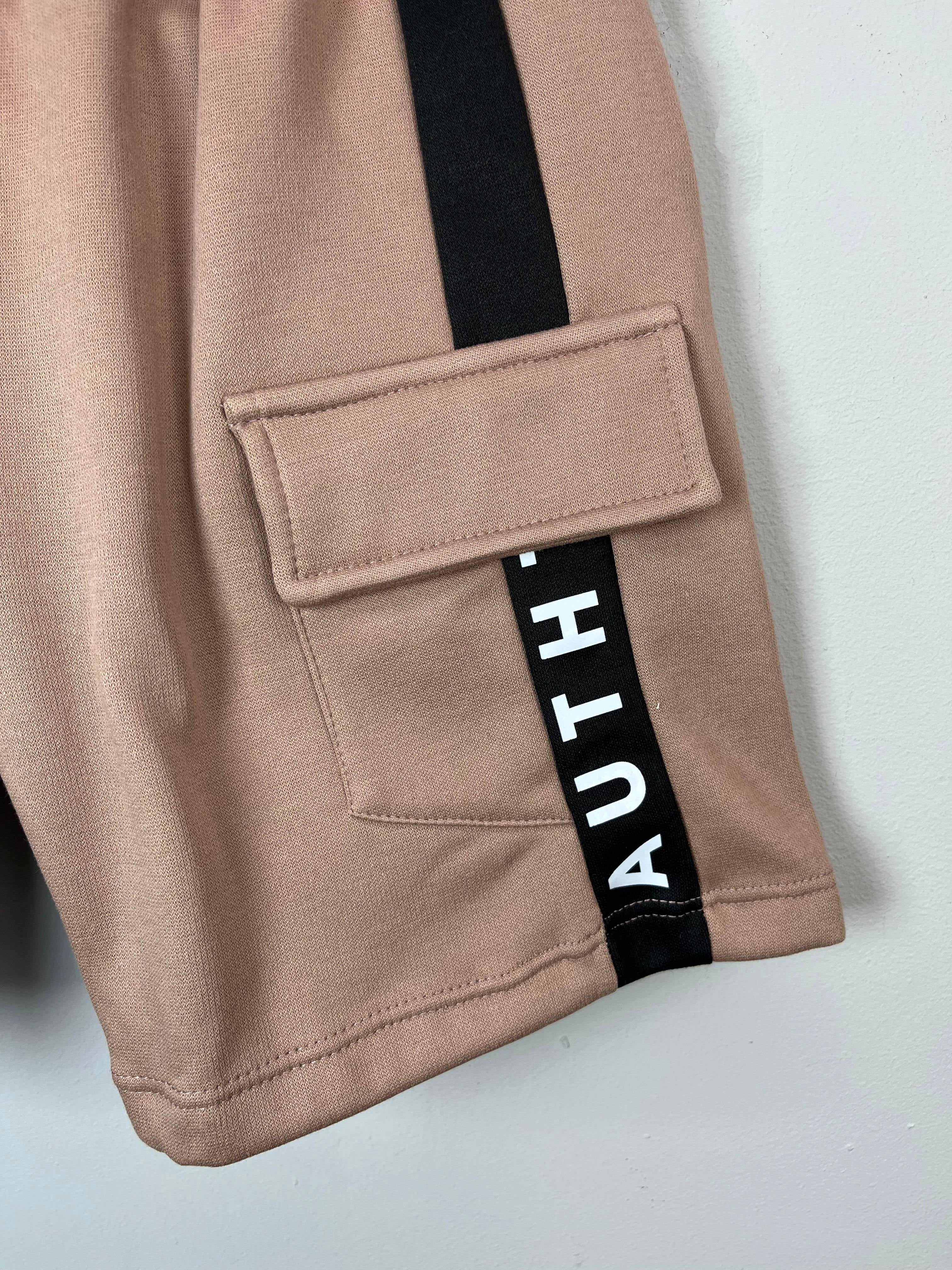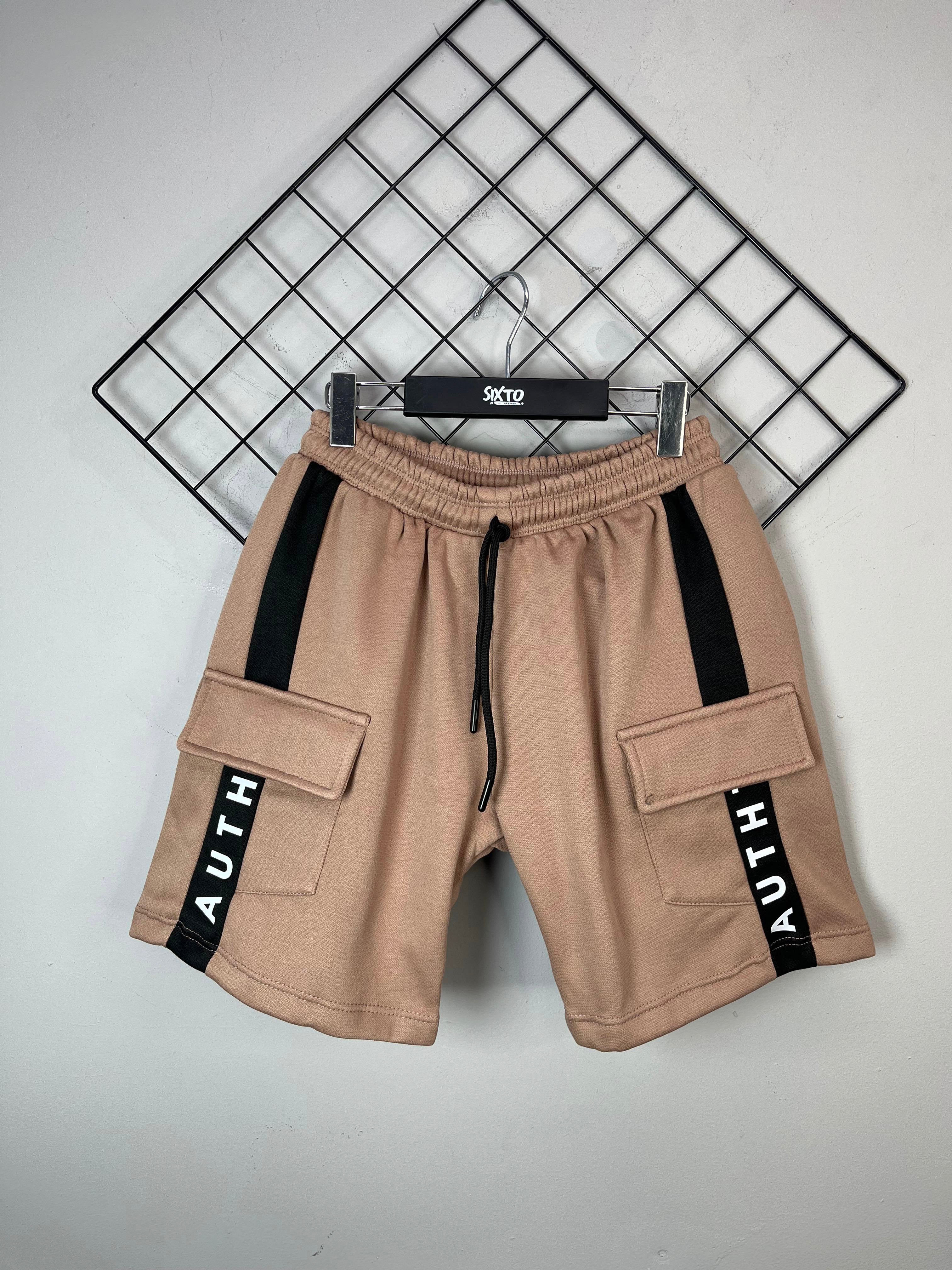 Conjunto de niña de falda short y camiseta tipo croptop con estampado color caqui