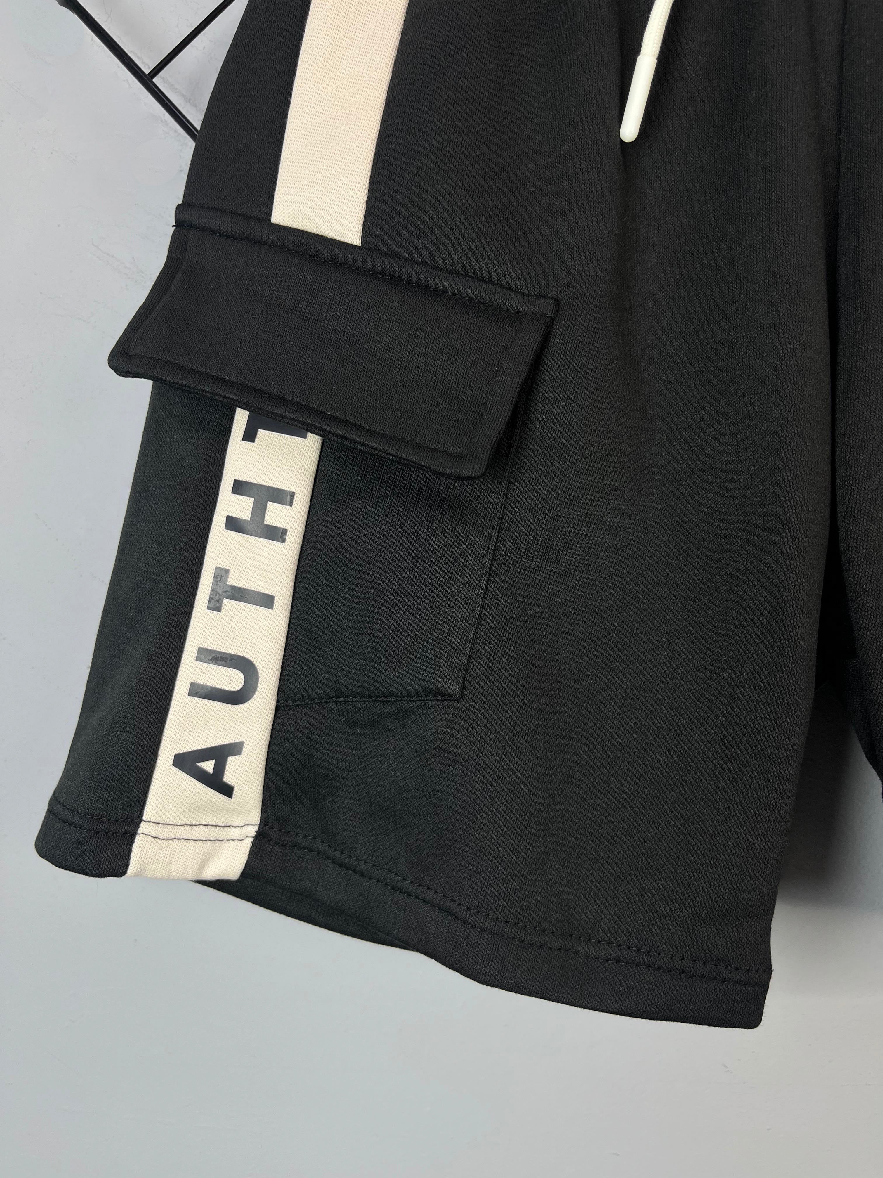 Conjunto de niña de falda short y camiseta tipo croptop con estampado color negro