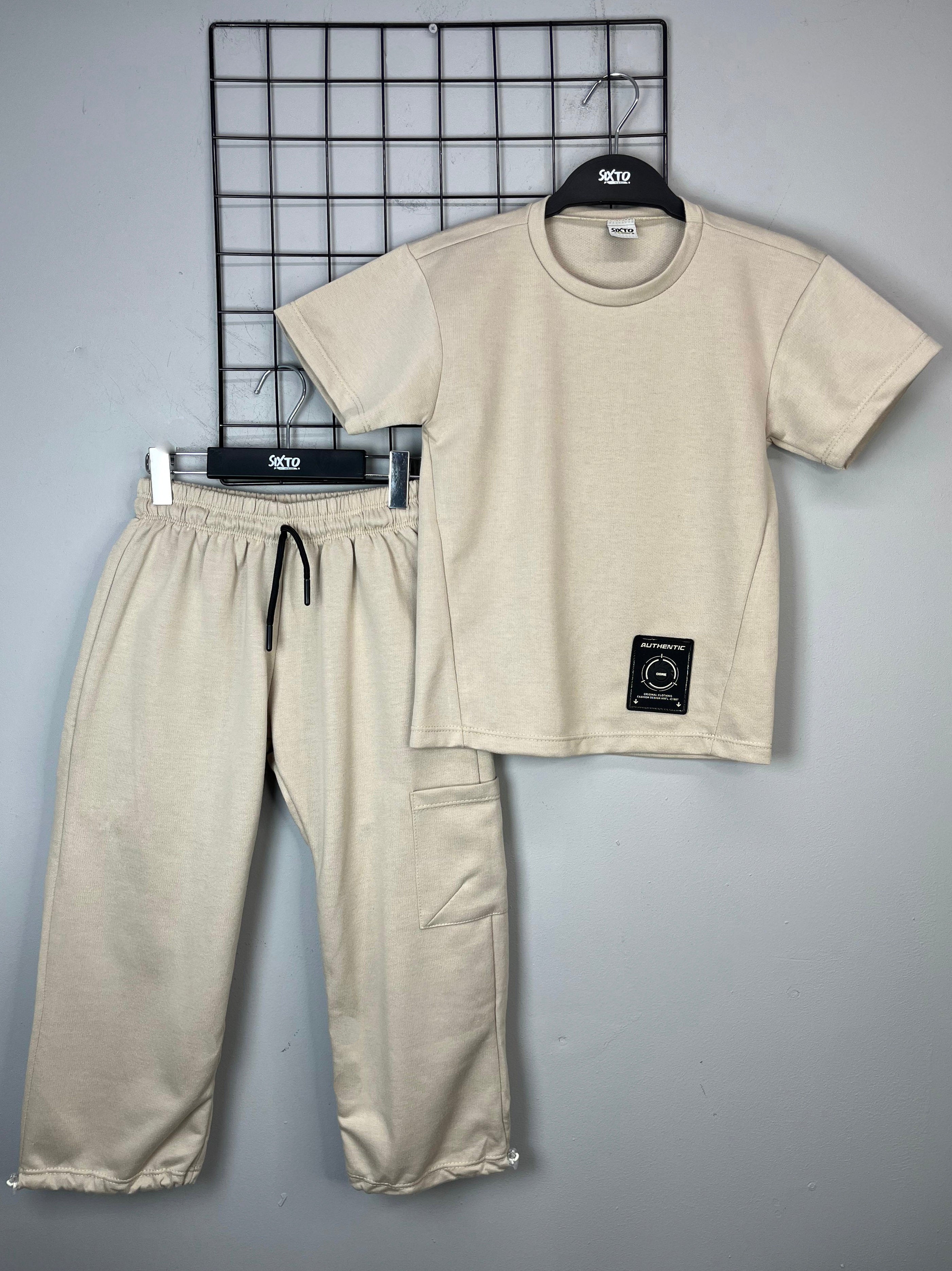 Conjunto para niño jogger y camiseta manga corta color taupe