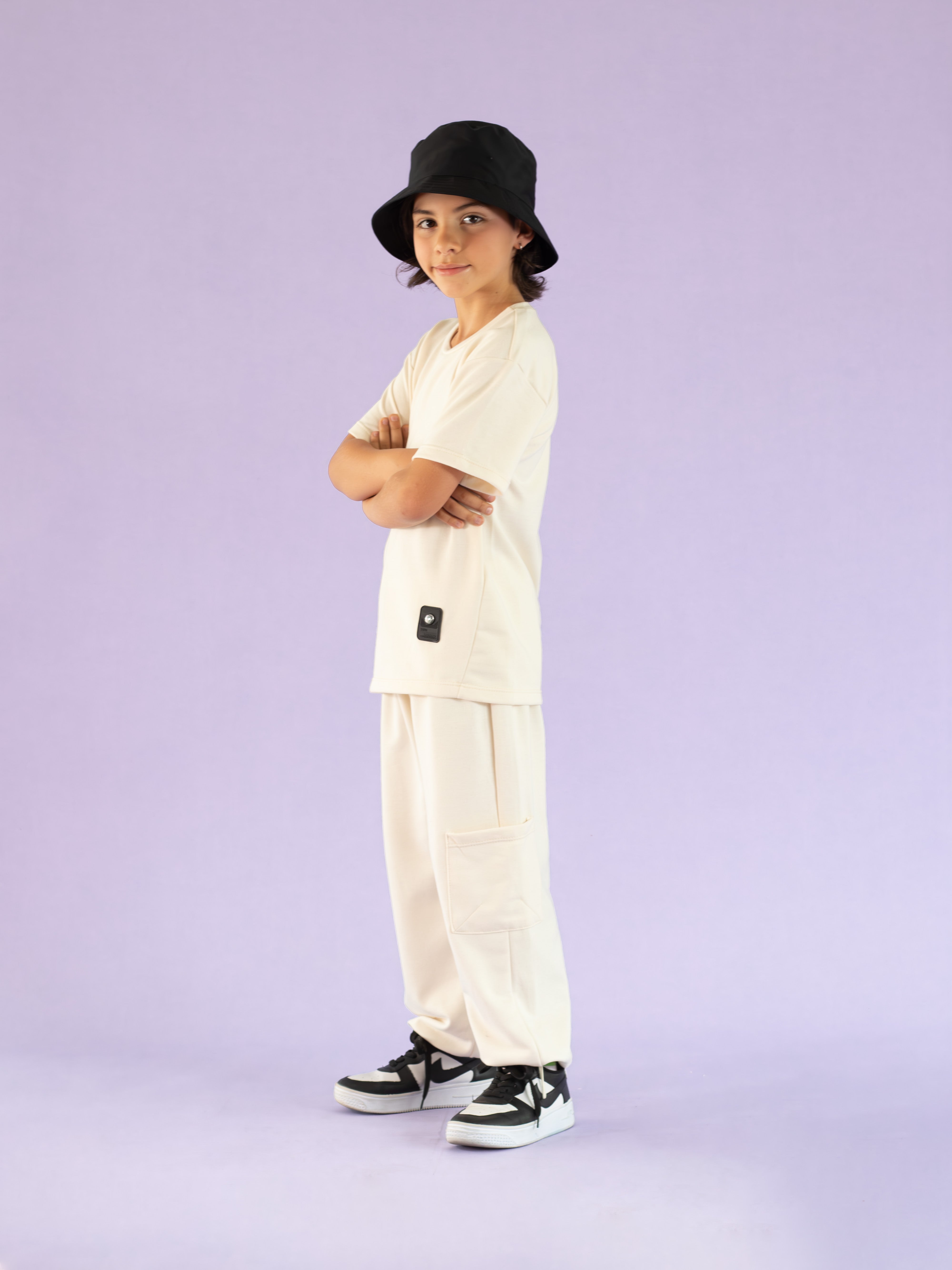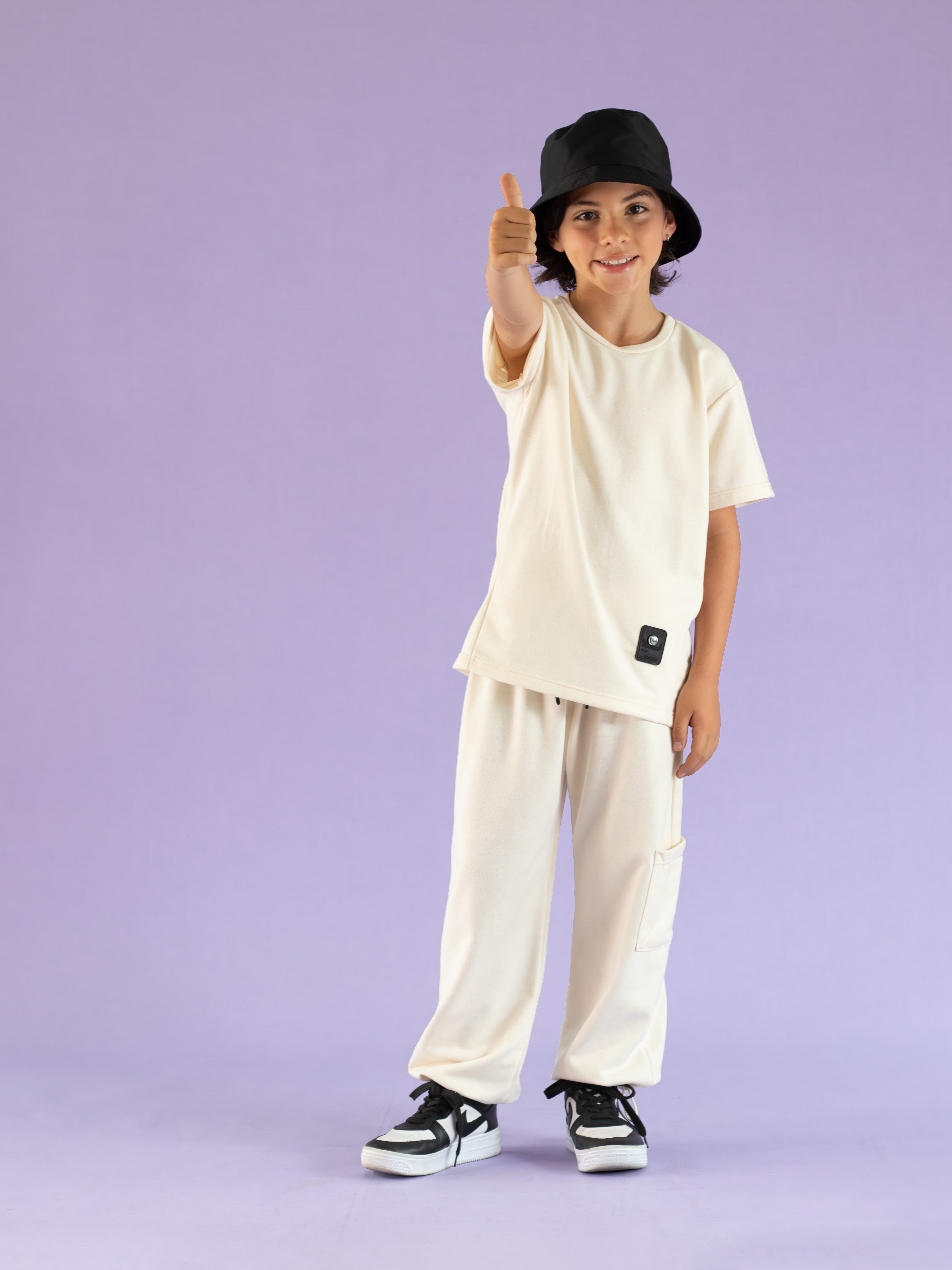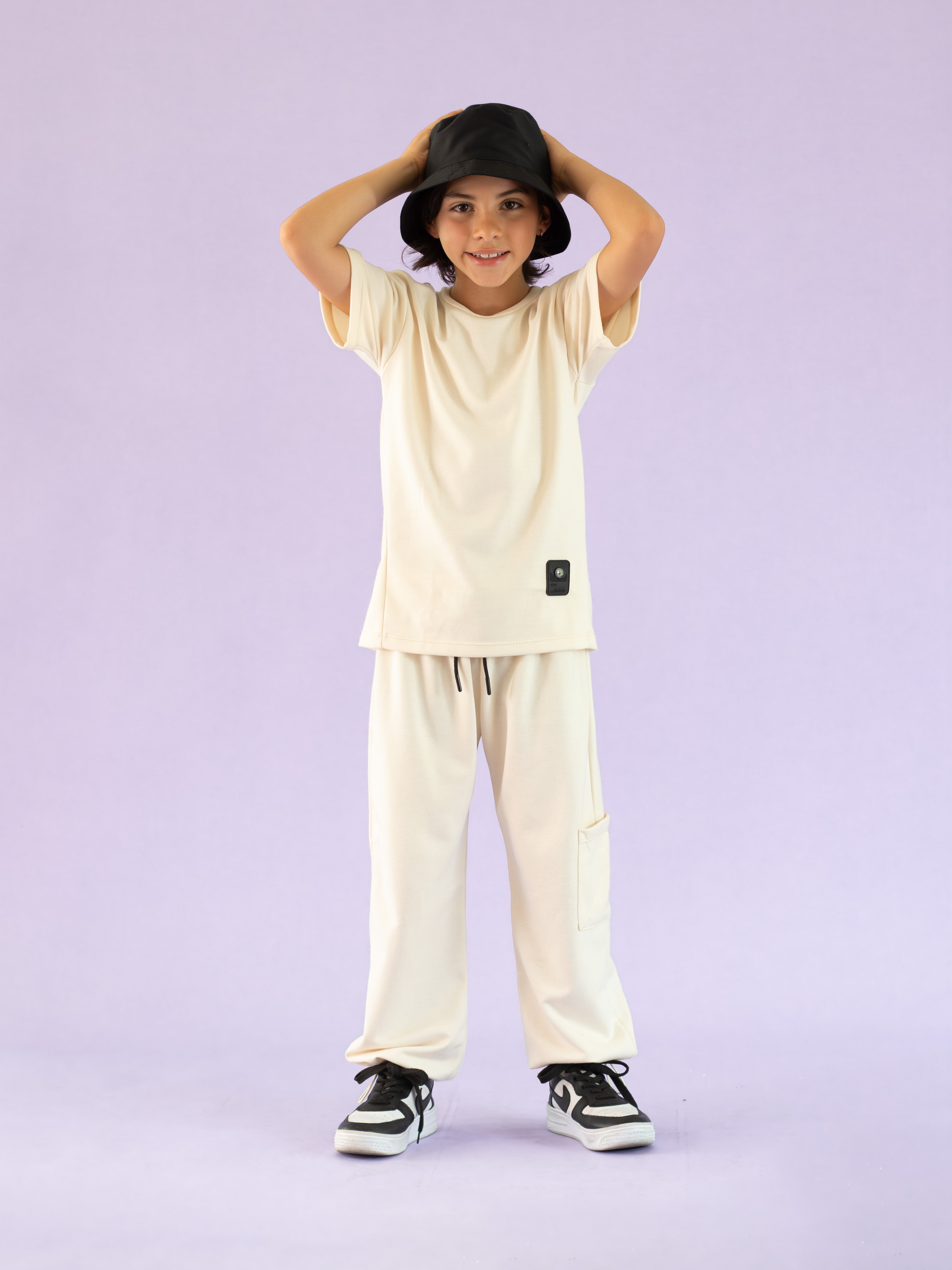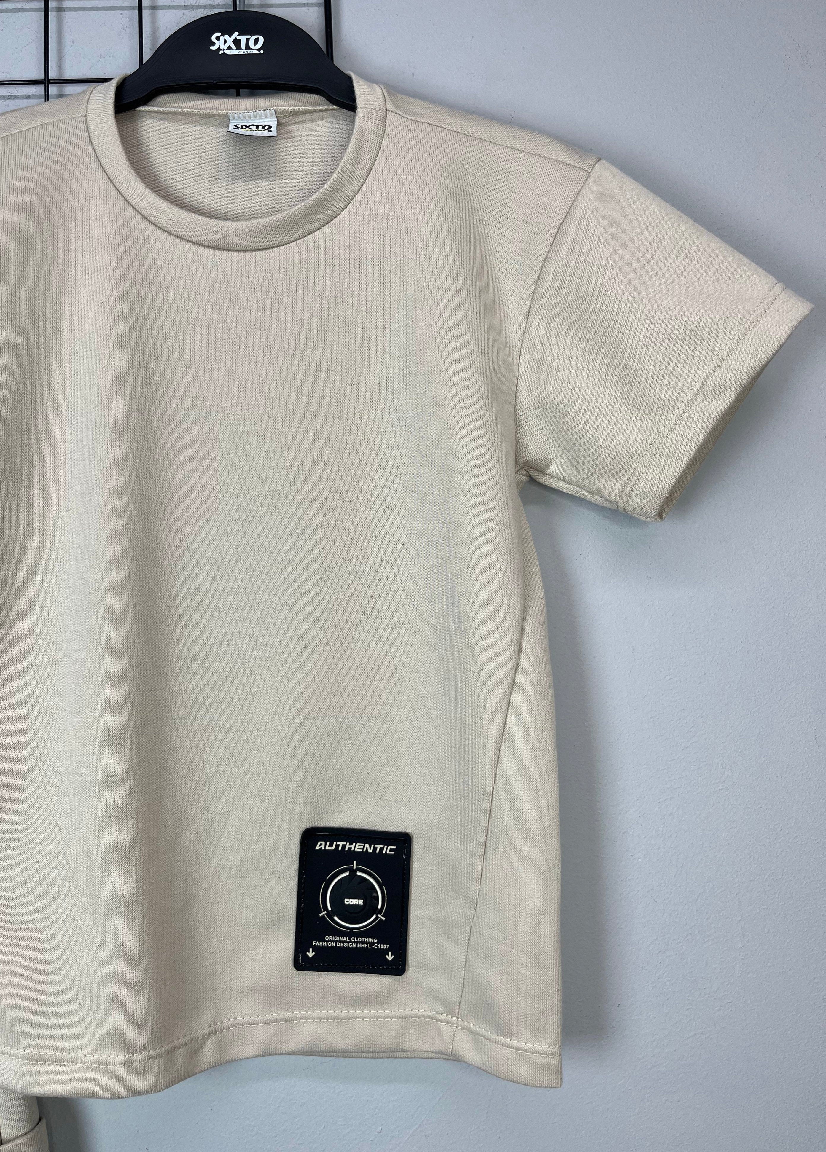 Conjunto para niño jogger y camiseta manga corta color crema