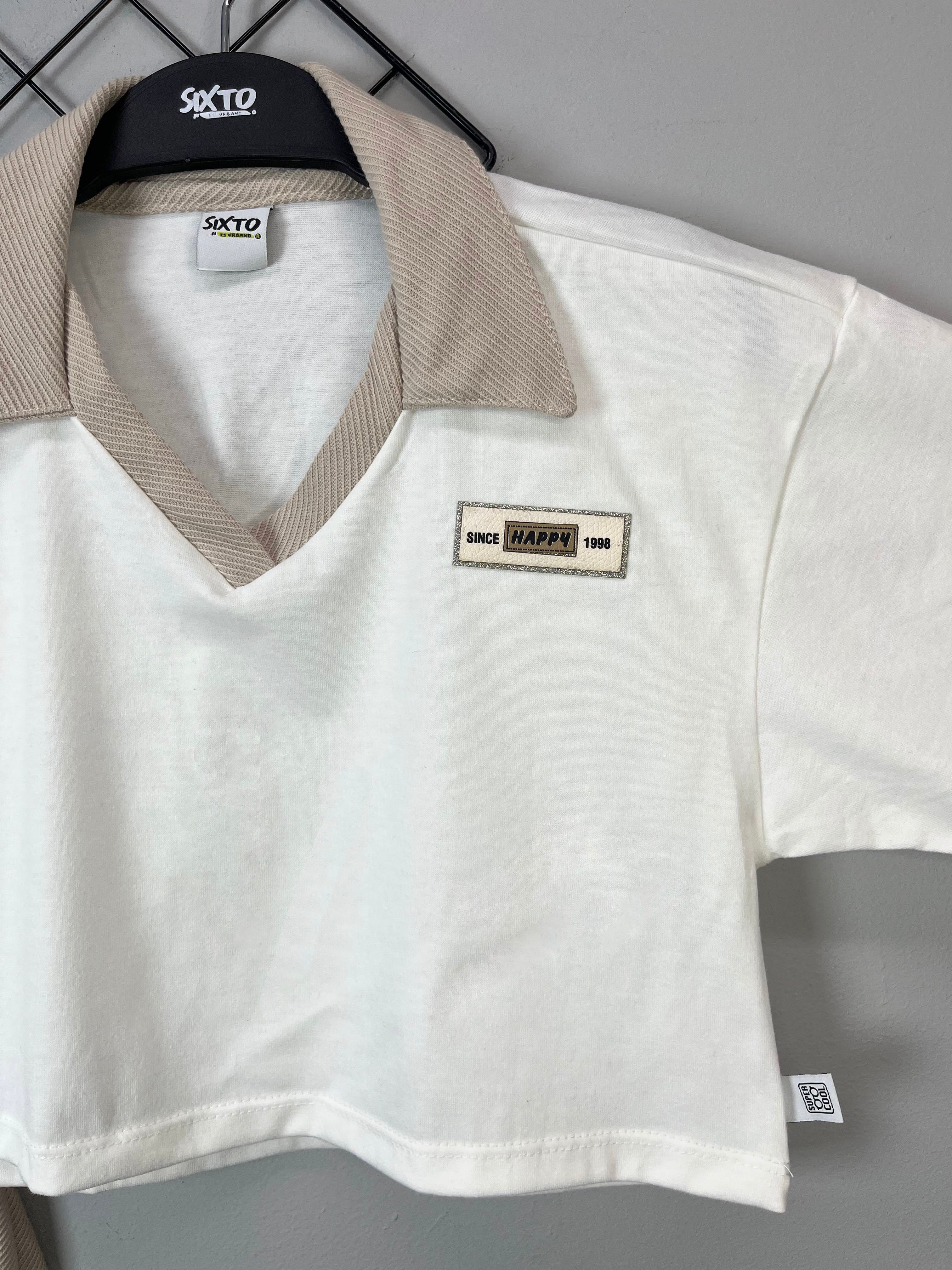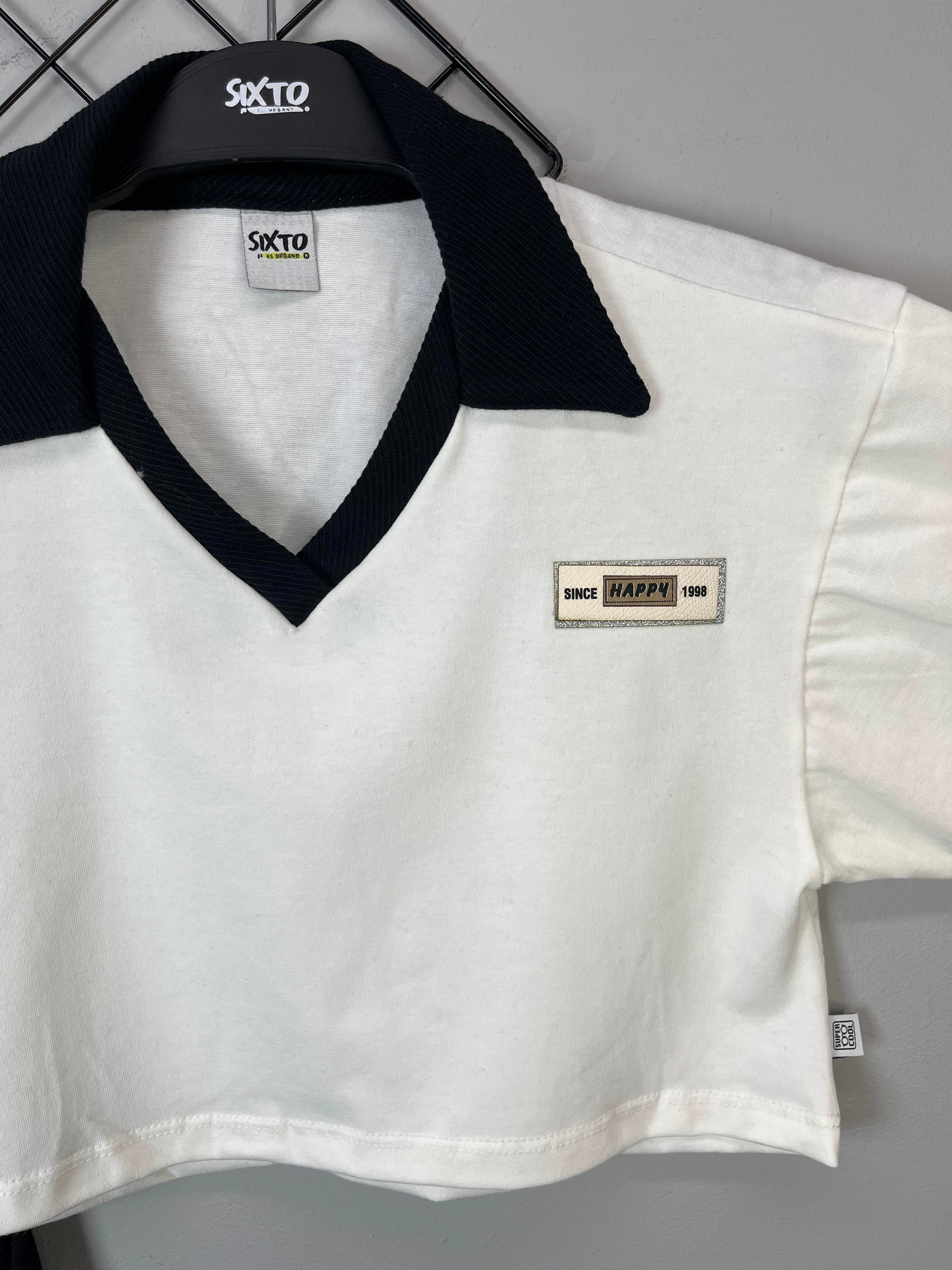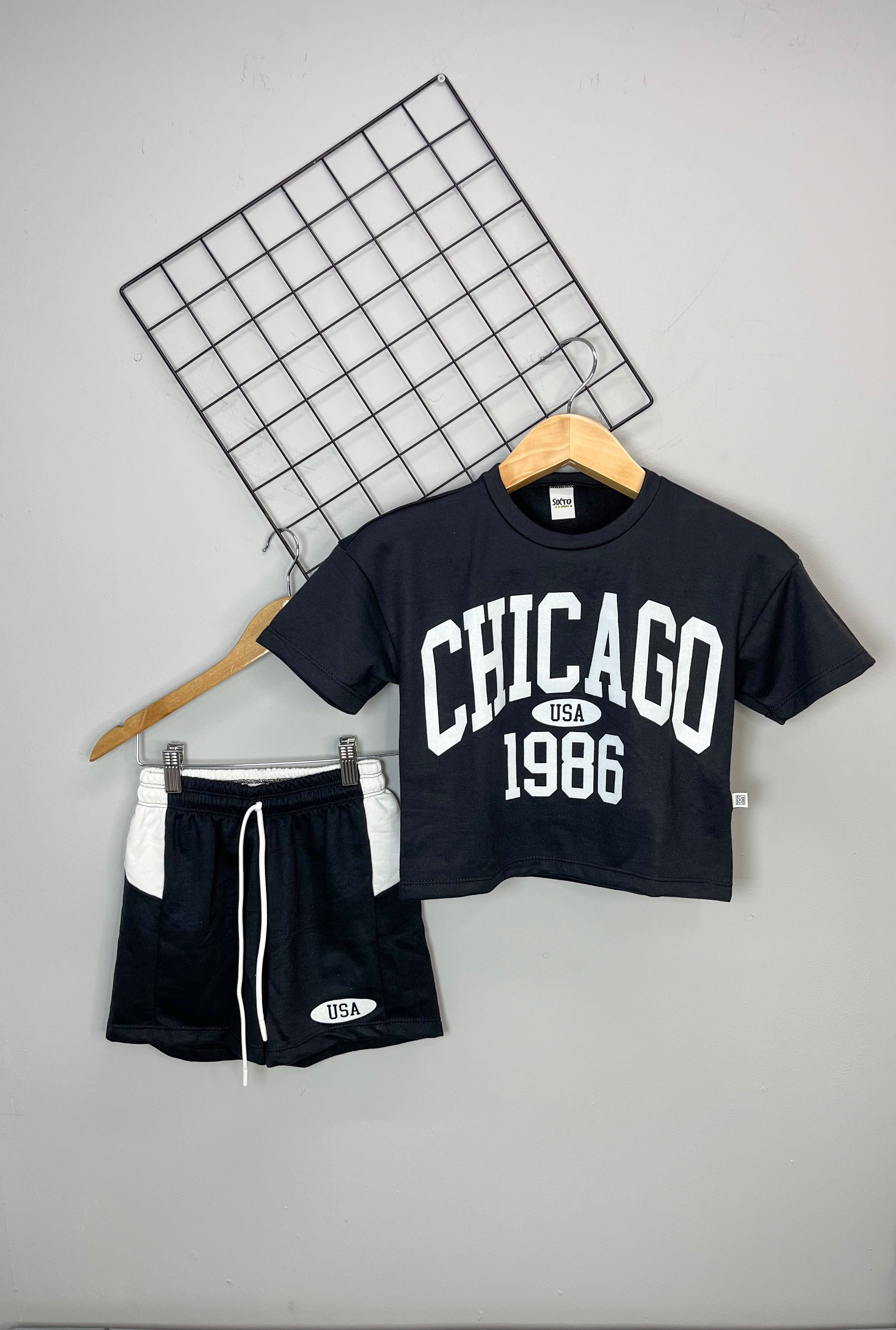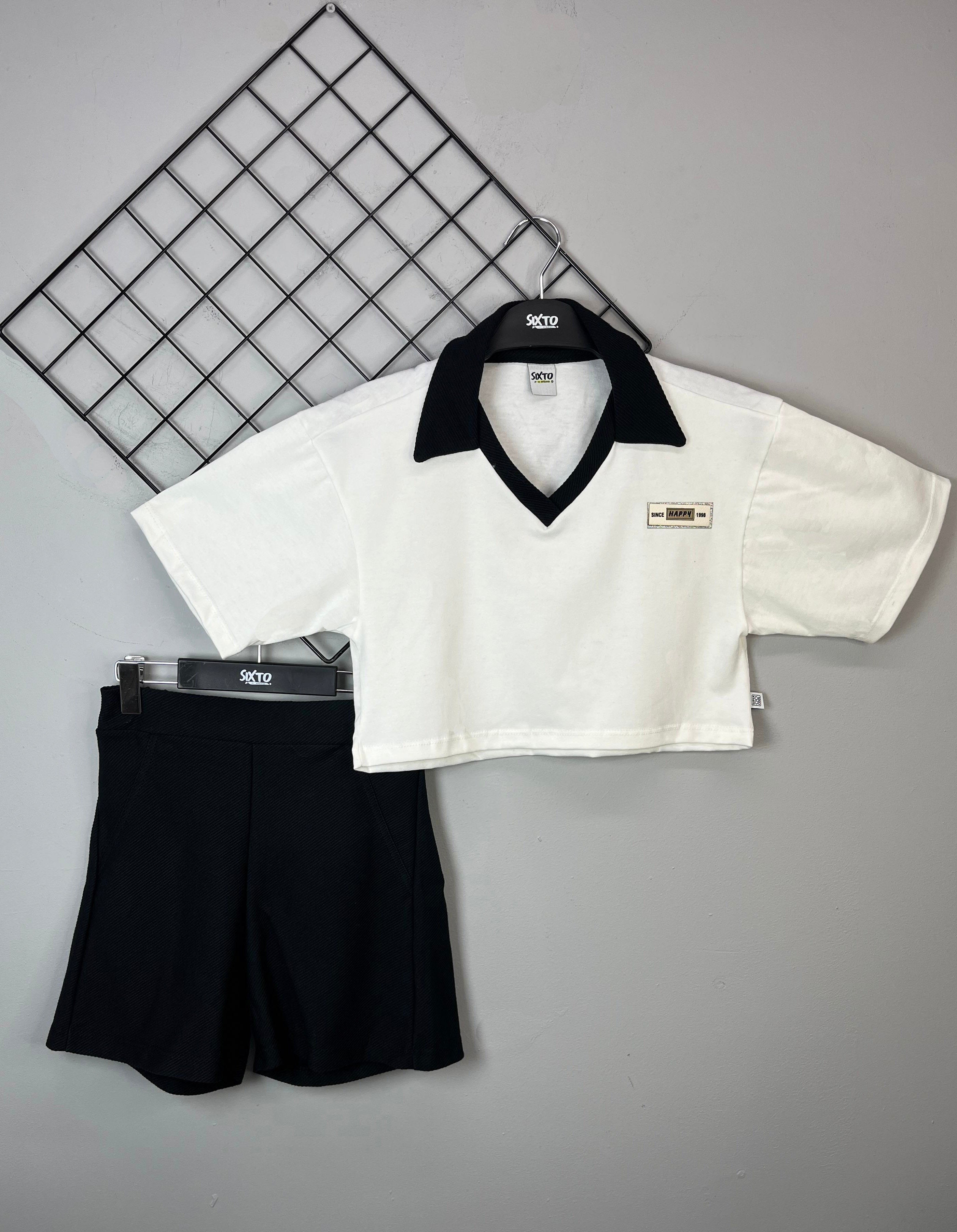 Conjunto de niña de short y camiseta tipo croptop con estampado color negro