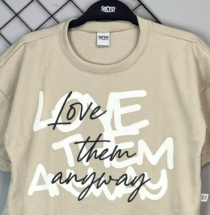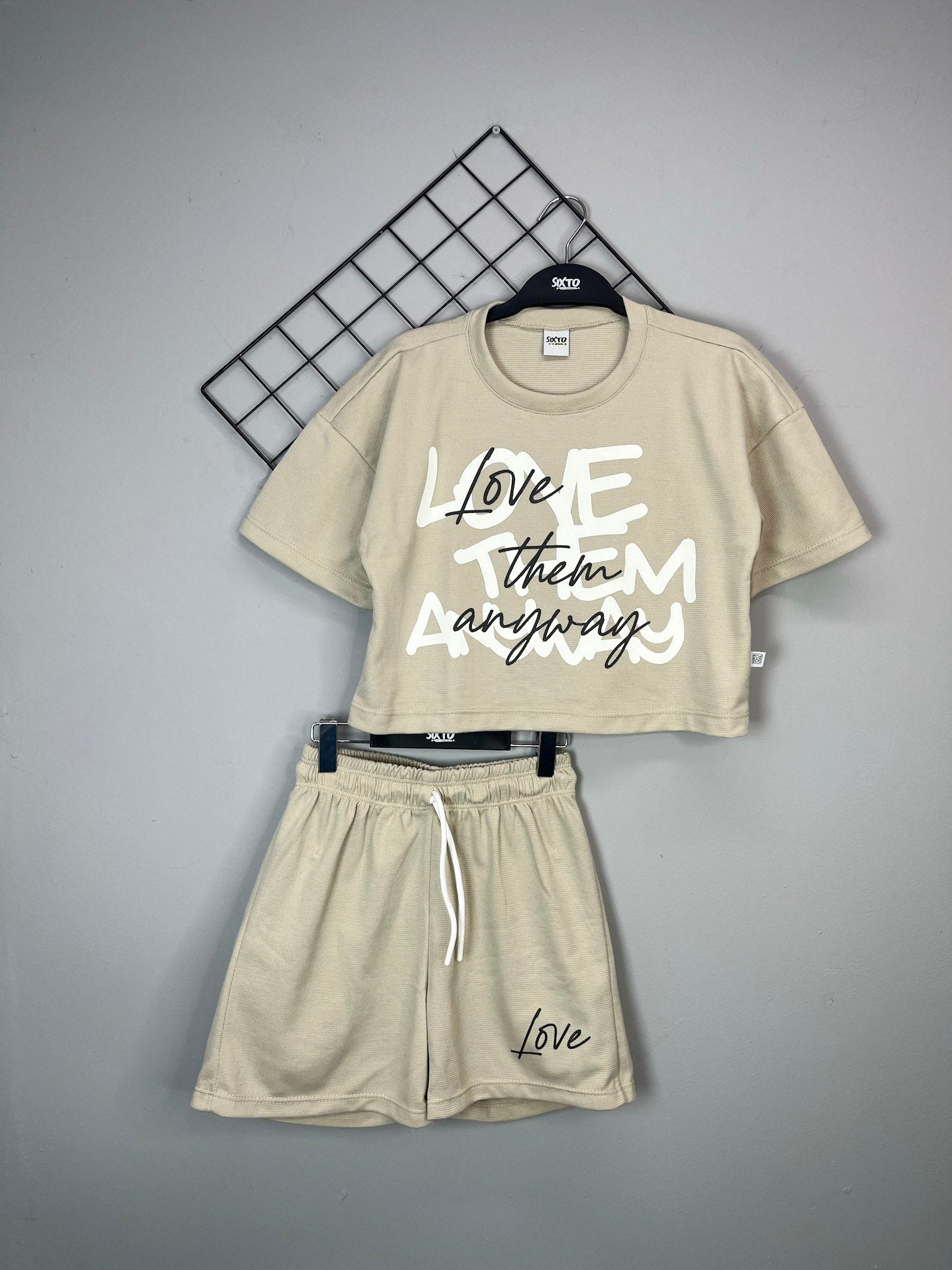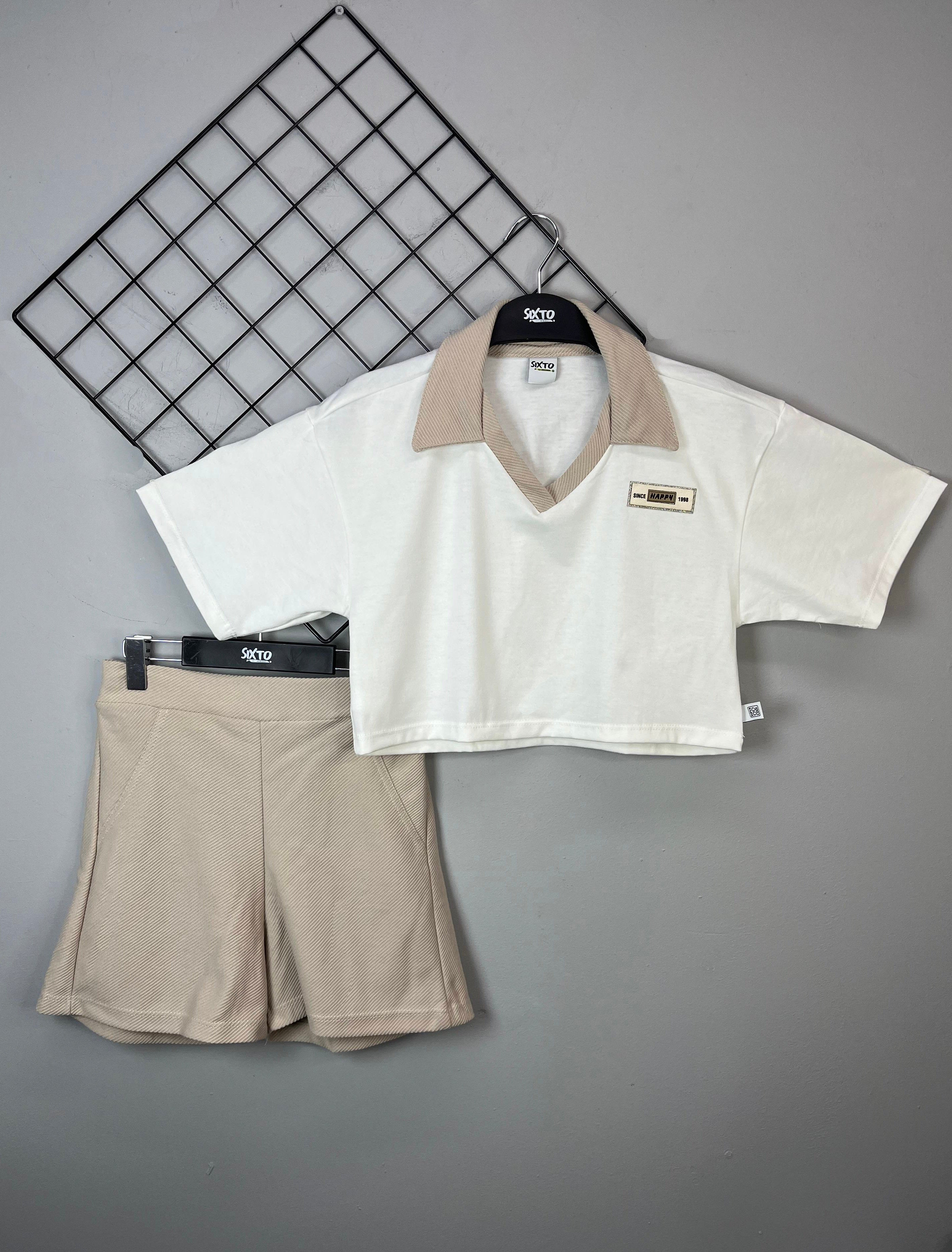 Conjunto de niña de short y camiseta manga corta con estampado color caqui