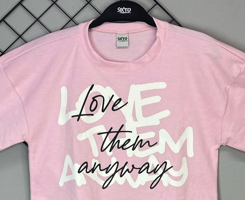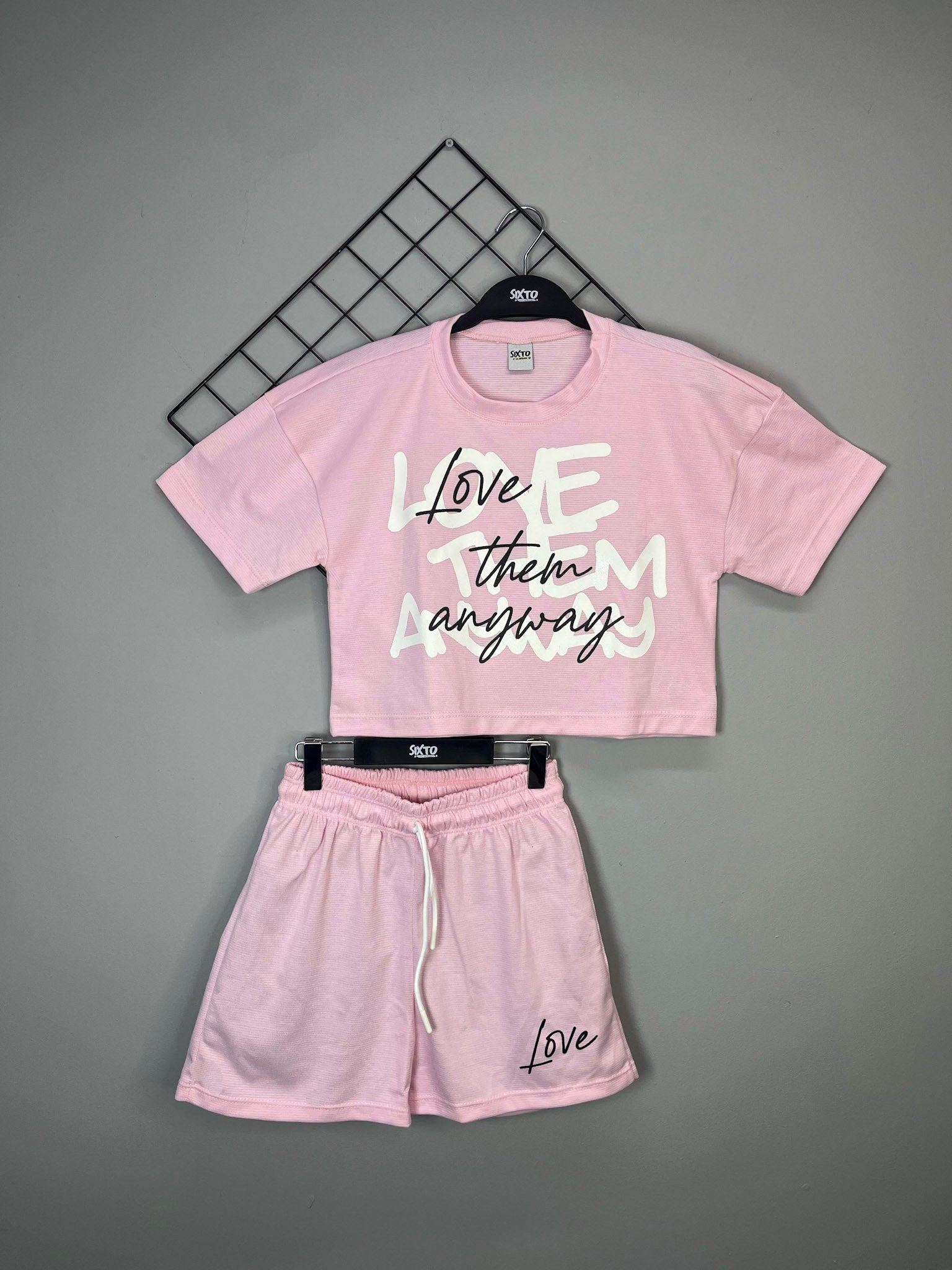 Conjunto de niña de short y camiseta manga corta con estampado color rosado