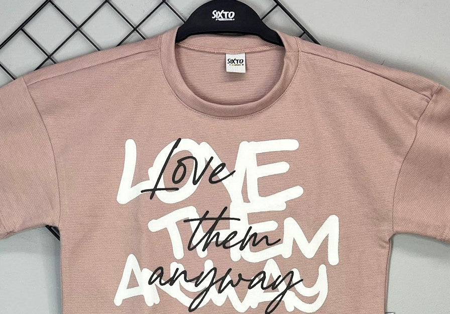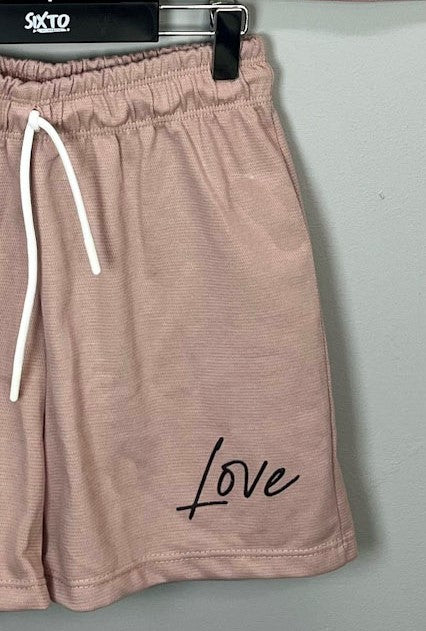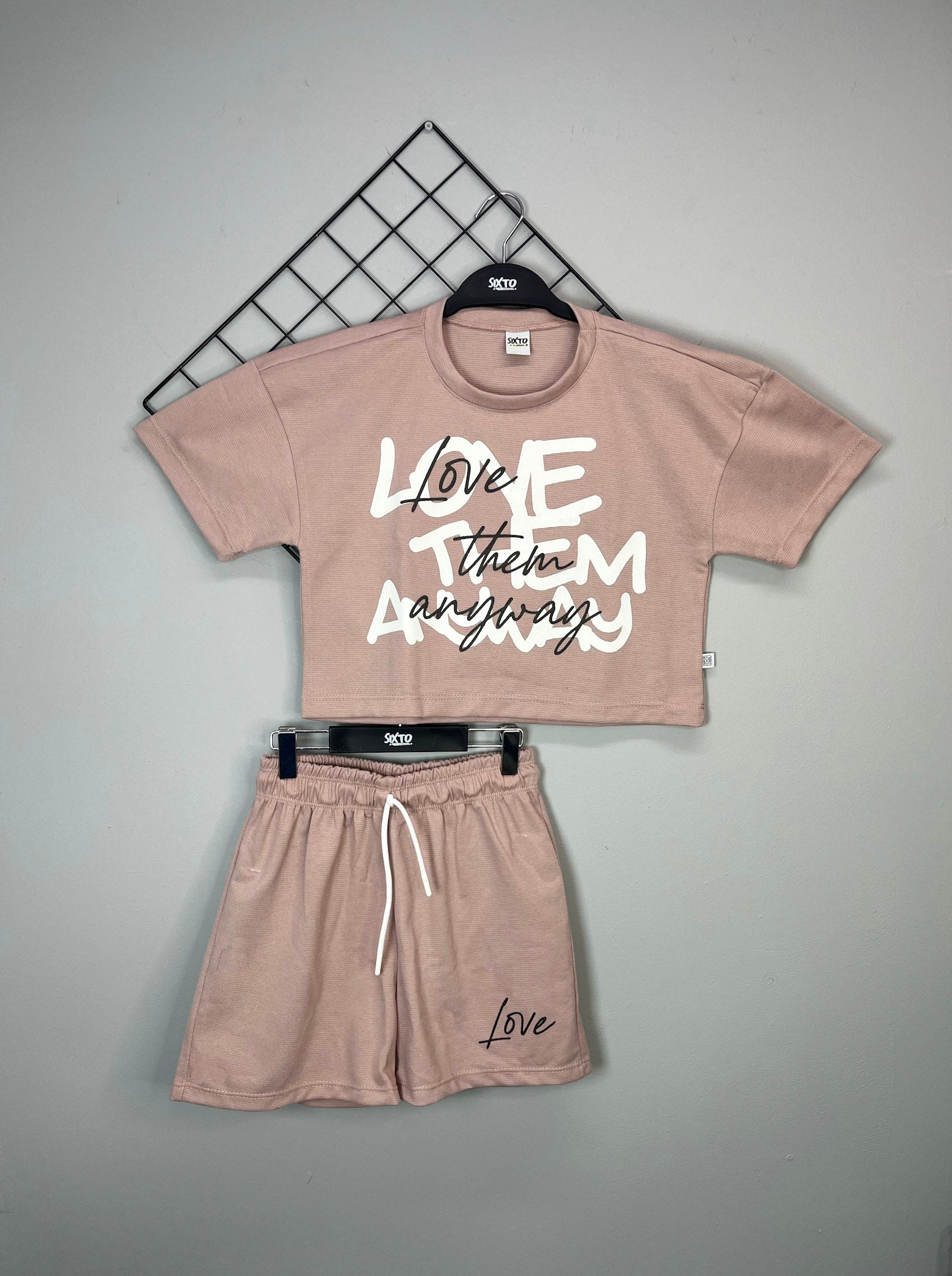 Conjunto de niña de short y camiseta manga corta con estampado color rosa viejo