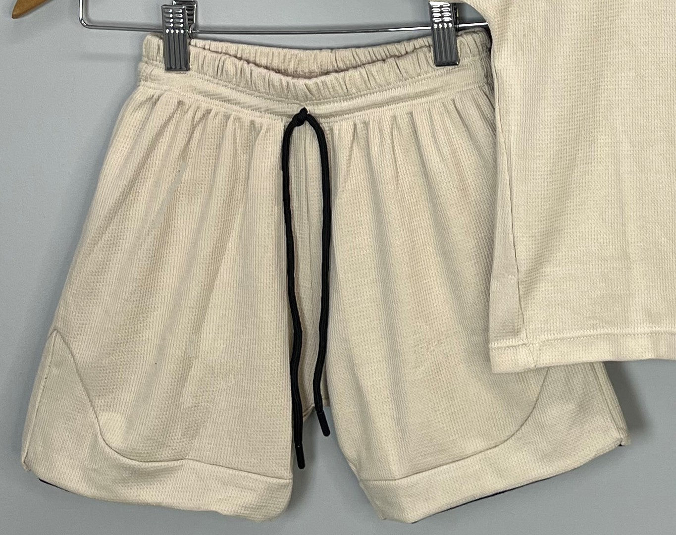 Este conjunto moderno y cómodo es ideal para el día a día. Fabricado en tela galleta, ofrece un diseño fresco y ligero. Incluye camiseta manga corta con detalle de línea en contraste y short con cintura elástica y cordón ajustable. ¡Perfecto para un look casual con estilo!